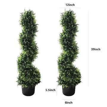 39 inchBoxwood Artificial Cedar Spiral Topiary Trees – Decorative Fake Greenery in Planter Pots for Front Porch, Outdoor Walkway, Entryway Decorating, Set of 2