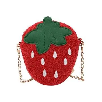 3D Cartoon Strawberry Plush Purse Red, Coin Wallets Cute Headset Bag and Hair Accessories Bag Fun Toy Key Gifts Goodie Bag with Lanyard