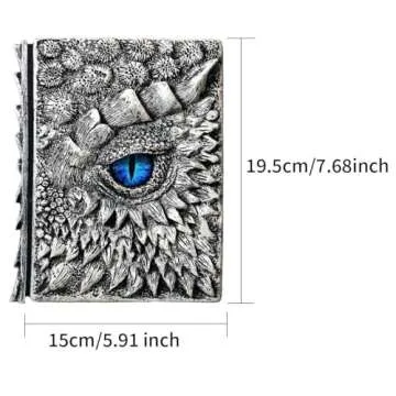 3D Dragon Eye Embossed Journal,Resin Engraving Notebook,Dnd notebook for Dragon Lovers ,100 Sheets Blank Paper,Hardcover Travel Notepad for Writing,Sketchbook,Collection,Gift A5 (7.3" x 5.1") (Silvery)