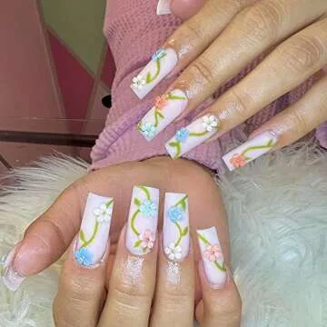 3D Flower Nail Charms, 2 Boxes 3D Acrylic Flower Nail Art Rhinestones White Pink Mixed Cherry Blossom Spring Gems Acrylic Nail Supplies with Pearls Manicure DIY Nail Decorations