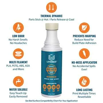 Show more Unleash your 3D printing potential with the 3D Printer Adhesive Glue Bed Weld Original, a revolutionary product designed to enhance your printing experience. This advanced adhesive utilizes cutting-edge thermal dynamic coating technology that activates when heated and releases objects upon cooling, ensuring a foolproof application every time. Engineered for use with a variety of filaments, including ABS, ASA, PLA, and PETG, this glue is your ultimate partner in achieving flawless prints. Whether you're a hobbyist or a professional, this glue is designed to keep up with all your creative needs.