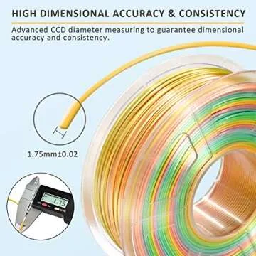 Show more Introducing the ultimate in 3D printing enhancement, the SUNLU Silk PLA+ Filament. This beautifully crafted filament transitions seamlessly through a spectacular spectrum of colors, with each hue offering its own unique charm. With approximately 15 meters per color, you'll experience the vibrant spectrum of red, orange, yellow, green, blue, purple, and pink. The 1.75mm diameter of this filament ensures compatibility with nearly all 1.75mm FDM 3D printers, delivering a dimensional accuracy of +/- 0.02mm, making it the perfect choice for precision projects.