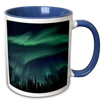 Experience the captivating beauty of the cosmos every time you enjoy your favorite hot beverage with our stunning 3dRose Two Tone Blue Mug. Featuring an enchanting design of the "Northern Lights in Shade of Green Amongst a Dark Blue Night Sky", this mug isn’t just a drinkware item; it’s an experience in your hands. The unique 3D design reveals a mesmerizing cosmic image that sparkles and surprises, making each sip a delight. Its high-gloss finish adds an extra layer of elegance while...