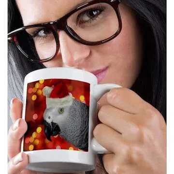 3dRose Santa Parrot Ceramic Mug, 11-Ounce