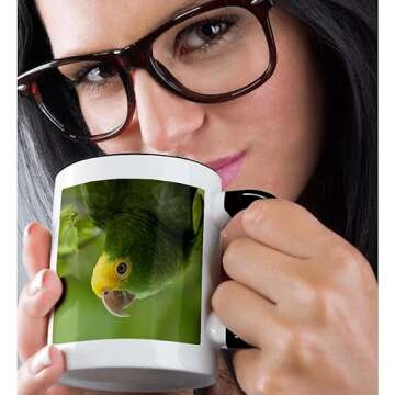 3dRose Yellow-Headed Amazon Parrot, Tropical Bird, Belize Pete Oxford Two Tone Mug, 11 oz, Black/White
