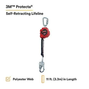 3M Protecta Rebel 3100426 Self Retracting Lifeline, Steel Swivel Snap Hook & Carabiner, 11', Black/Red