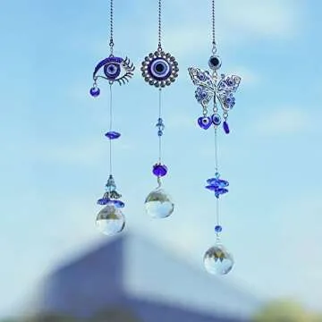 3pcs Evil Eye Suncatchers with Crystal Prism Balls Window Hanging Decoration Ornament Sun Catchers Rainbow Maker Pendant