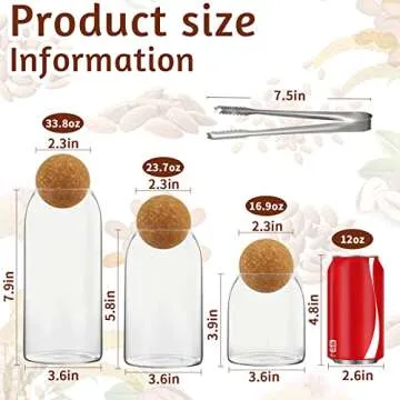 Show moreIntroducing the exquisite 3Pcs Glass Jar with Round Ball Cork - your ultimate storage solution for kitchen, pantry, and bathroom essentials. Crafted with high-quality glass, these jars are thin yet durable, expertly engineered to withstand thermal shock. With three varying sizes - 500ml, 700ml, and 1000ml - you can effortlessly sort and store a plethora of ingredients, ensuring your culinary space remains organized and efficient. These versatile containers not only serve as functional storage but also add a touch of elegance to your kitchen decor.
