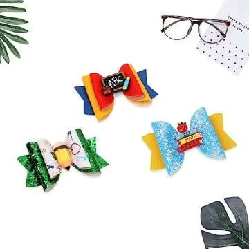 3PCS Glitter Sequin Pencil Apple Book Blackboard Grosgrain Ribbon Alligator Hairgrips - First Day of School Kindergarten Hair Accessories