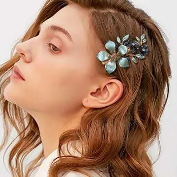The clips, made from durable copper and expertly electroplated, boast luxurious colors that catch the light with every movement. Their medium size, approximately 2.3 inches (6cm) in length, makes them suitable for holding back hair while adding a decorative element to any hairstyle. With a focus on high-quality craftsmanship, you can appreciate the fine details, including the visible veins on both the flowers and leaves, adding that extra touch of sophistication. These clips are perfect for medium to thick hair types, ensuring they hold your hair comfortably without slipping out.
