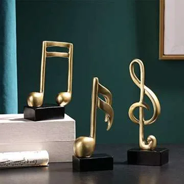 Show more Introducing a stunning set of music note sculptures that blend art and elegance, perfect for any music lover. Crafted with high-quality resin and finished with a luxurious matte vintage gold paint that beautifully contrasts with black accents, these pieces are designed to elevate the aesthetic of any space. Their simple shape and frosted design not only enhance their texture but also make them easy to clean and maintain.