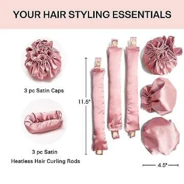 3Sets/6PCS Ariuvor New Satin Heatless Hair Curler,Hair Rollers for Heatless Curls with Hair Caps,Soft Heatless Curling Rod Headband for Long Hair,No Heat Curling to Sleep in Overnight (pink)
