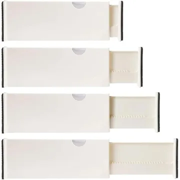 Show more Transform your living space with our innovative adjustable drawer dividers! These elegant and functional dividers are designed to bring order and organization to any drawer or cabinet. With an easy one-click installation, there's no need for tools or glues, making the setup process a breeze. The foam rubber pads grip securely, preventing any marks or residue on your surfaces. Perfect for organizing cutlery, utensils, clothing, or even craft supplies, these dividers create safe and effective sections within your drawers.