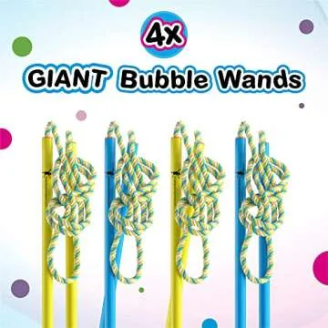 Show more Experience the awe and joy of creating unimaginably giant bubbles with our innovative giant bubble wands! Designed with a unique 2-handle structure, these wands have been the choice of champions, setting world records in bubble making for the last 30 years. Whether you're at a park, backyard, or beach, prepare to hear onlookers exclaim, 'WOW... Amazing!' as you generate mesmerizing giant bubbles that float gracefully through the air.