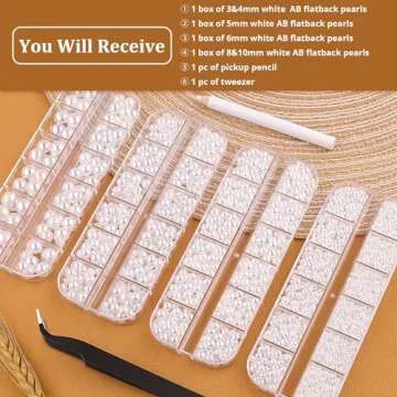 Each pearl is designed to catch the light beautifully, resulting in a mesmerizing sparkle that will elevate all your projects. The included pick-up pencil and precision tweezer make application a breeze, allowing you to handle even the tiniest pearls with utmost care. Enjoy the convenience of organized storage with each box having independent lids, preventing messy mixes and ensuring quick access to the desired size when inspiration strikes!