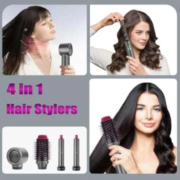 4 in 1 Air Styler with Ionic Blow Dryer Brush, Fast Drying and Auto Wrap Curling Wand, 110,000RPM Motor for Volumizing, Straightening and Styling Hair