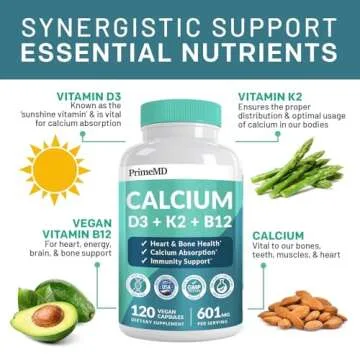 4-in-1 Calclum Supplements for Women and Men - Calcium 600mg with Vitamin D3 K2 5000 IU Supplement for Heart, Bone and Body Defenses - Gluten-Free, Vegan-Friendly (120 ct)