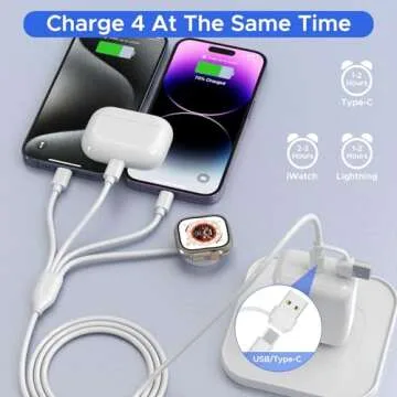4 in 2 Multi Charging Cable for Apple Watch Charger,USB C Cable Universal Travel Charger with L/Type C Compatible with iPhone 16 15 14 13 iWatch Series 10/9/8/7/6/5/4/3/2/1 Galaxy S23 S22-4FT