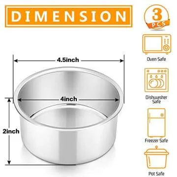 4 Inch Cake Pan Set of 3, P&P CHEF Small Stainless Steel Round Baking Layer Pans Bakeware for Mini Cake Pizza Bread, Non Toxic & Healthy, Leakproof & Easy Clean, Mirror Finish & Easy Releasing