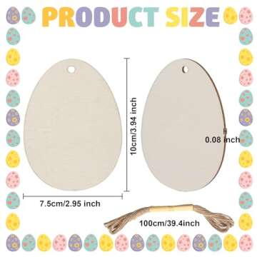 4 Inch Easter Egg Wooden Cutouts - 50 PCS DIY Hanging Ornaments
