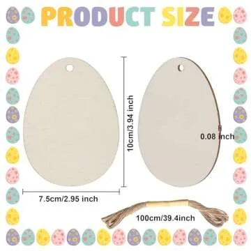 Show moreBring your creativity to life this Easter with our 4 Inch Easter Egg Wooden Cutouts. This set includes 50 pieces of beautifully crafted unfinished egg wood slices that are perfect for a variety of crafts and decorations. Each cutout measures 4 inches, providing ample space for kids and adults alike to paint and personalize these delightful eggs. Made from high-quality wood, these cutouts feature a smooth surface, ensuring a flawless canvas for your artistic expression. Along with your cutouts, you will receive 32.8 feet of durable hemp rope for effortless hanging or crafting. This makes them not only suitable for decorations but also wonderful as gift tags or unique party favors. You'll find that these egg-shaped pieces embody the spirit of Easter, inviting everyone to join in on the fun of DIY projects and creative activities.