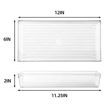 4 Pack 12"x 6" Large Size Clear Plastic Desk Drawer Organizer Tray Bathroom Office Kitchen Utensils Silverware Gadgets Dividers Desk Drawer Storage Bins Container for Dresser Cosmetic Makeup