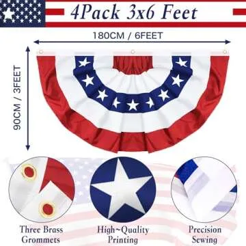 Show moreCelebrate your American pride with the stunning 4-Pack 3x6 FT American Bunting Flags. Each flag banner in this eye-catching set measures an impressive 3 feet by 6 feet, showcasing vibrant red, white, and blue colors in a traditional pleated fan design. Crafted with a commitment to quality, these bunting flags are perfect for decorating any space during significant patriotic celebrations such as 4th of July, Memorial Day, Veterans Day, and Flag Day. Their striking appearance and durable construction make them a must-have for any patriotic event, ensuring you show off your love for the USA in style.