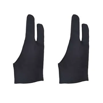 4 Pack Artist Glove with Two Fingers for Digital Artists, Prevents Smudges for Light Box Graphic Tablet Pen Display iPad Pro Pencil Black Drawing Art Creation(Medium)
