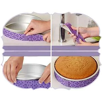 Show more Discover the magic of baking with our innovative Cake Baking Strips, a must-have for any baking enthusiast! Made from a unique blend of super absorbent cotton and durable polyester fibers, these strips are designed to deliver perfectly level and moist cakes every time you bake. No more worrying about overcooked edges or domed tops; these strips not only help your cakes bake evenly but also significantly improve their texture and appearance.