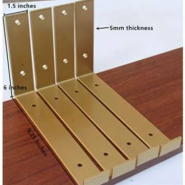 4 Pack - Golden 9.25"L x 6"H x 1.5"W J Lip Shelf Bracket Rustic Industrial Farmhouse Iron Metal Wall Floating Shelf Bracket Metal Shelf Bracket, Industrial Shelf Bracket, Shelf Supports with Screws