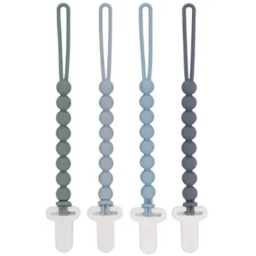 4-Pack Silicone Pacifier Clips with One-Piece Beads - Safe and Stylish for All Babies