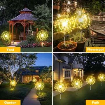 4-Pack Solar Outdoor Lights for Garden Decorations, 360 LED Solar Firework Lights with 2 Lighting Modes, Solar Powered Fairy Lights Waterproof for Outside Pathway Patio Yard Party Decor(Warm White)