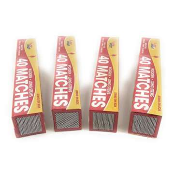 Show moreIntroducing our 4 Pack Wooden Strike On Box Safety Matches, a must-have addition to any household or outdoor enthusiast’s gear! Each box contains 40 matches, measuring an impressive 11 inches long, ensuring you have ample length to reach those deep corners of your BBQ grill or fireplace without getting burnt. Made by the reputable Quality Home Smart brand, you can trust that these matches are not only effective but also safe, as they are not manufactured in China. Each match is designed for an optimally straightforward and secure lighting experience.