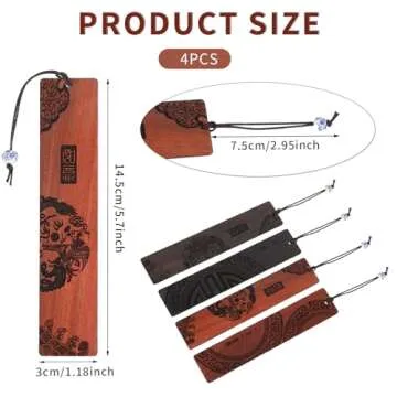 Show more Introducing the perfect gift for book lovers: a stunning set of 4 wooden bookmarks that are not only functional but also add a touch of elegance to any reading experience. Crafted with care, these bookmarks come in a striking combination of red and black colors and measure a convenient 14.5 cm in length and 3 cm in width, making them suitable for most books. Each bookmark is made from high-quality wooden material, ensuring durability and a smooth, pleasant texture that feels great in any book.