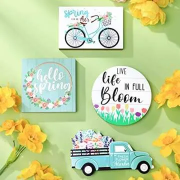 Show moreIntroducing the delightful 4 Pcs Easter Tiered Tray Decorations – your perfect companions for welcoming the joyous season of spring! This charming set is designed to infuse your home with vibrant colors and cheerful seasonal motifs. Each piece in this collection represents springtime’s charm, featuring enchanting designs like flowers, bicycles, and bunny themes. Crafted from premium quality wood material, these decorations are not only visually appealing but also durable, ensuring they remain a staple in your spring decor for years to come. They are thoughtfully sized to enhance any tiered tray, making them a standout addition to your home or as a centerpiece for your festive gatherings.