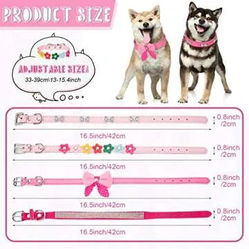 4 Pcs Pink Dog Collar Spiked Studded Dog Collars Pearls Dog Necklace Dog Collar with Rhinestone Bow Knot Crystal Diamond Colorful Flower Bling Girl Dog Cat Collars for Dogs(Novel Style,Medium)