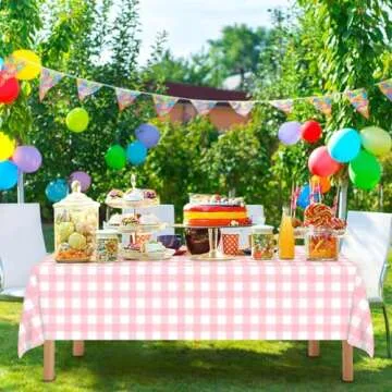 These pink gingham tablecloths are versatile and can complement themes like picnics, Italian restaurants, garden parties, and more.