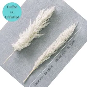 Show moreElevate your home decor with our 4 Pcs Small Fluffy Natural Dried Pampas Grass, a stunning addition that embodies the essence of bohemian style. These beautifully curated pampas grasses are perfect for adding a touch of elegance and charm to any setting. Each stem is carefully dried to maintain its soft and fluffy texture, ensuring that you receive a product that is both durable and visually striking. Measuring just the right size, they lend themselves perfectly to a variety of arrangements, be it in a vase for your living room or as a centerpiece for weddings and special events.
