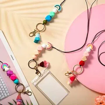Show moreElevate your accessories game with our delightful set of 4 Pcs Teacher Lanyards for ID Badges and Keys. Designed with vibrant rainbow colors, these lanyards are not just functional but also a fantastic fashion statement. Each lanyard features exquisite multi-colored beads crafted from high-quality silicone, ensuring a comfortable and stylish wear, suitable for teachers, nurses, and employees alike. With both vertical and horizontal ID badge holders, this set provides versatility to match your daily requirements.