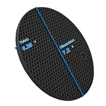 Show more Introducing our 4 Pcs Trivets for Hot Dishes, carefully designed to elevate your kitchen experience! These extra thick silicone trivets, measuring 7 1/5'' * 1/4'', provide unparalleled protection for your dining table and kitchen counters. Unlike most competitors, you won’t need to stack multiple pads; just one will do the job effortlessly. Crafted from 100% food-grade silicone, they are both safe and elegant, making them an indispensable addition to your kitchenware.