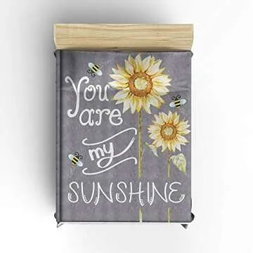 4 Piece Polyester Fabric Duvet Cover Set with Zipper Closure King, You are My Sunshine Bees Sunflowers Daybed Bedding Set Bedspread with 2 Pillow Shams for Girls Boys Kids Children Adults