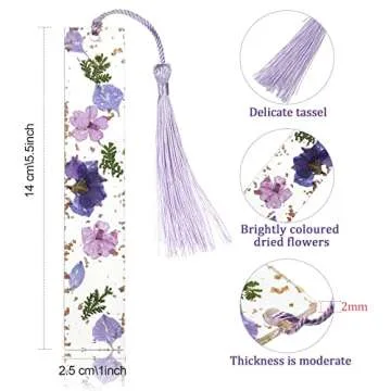 4 Pieces Dried Flower Resin Bookmarks with Colorful Tassels