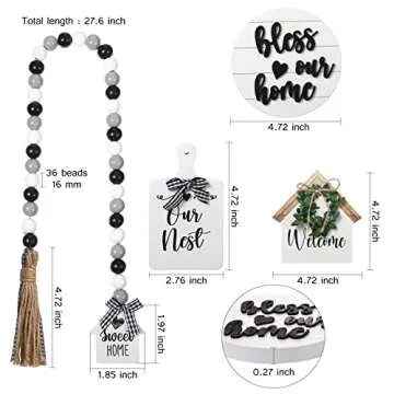 4 Pieces Farmhouse Tiered Tray Decor Set Including House Farmhouse Sign Wooden Small Items Plaid Wood Bead Garland for Home Decor(Simple Style)