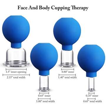 4 Pieces Glass Cupping Set Glass Silicone Cupping Cups Massage Vacuum Suction Cupping Cups for Body Face Leg Arm Back Shoulder Muscle and Joint Pain (Blue)