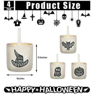 4 Pieces Halloween Bucket Set - Reusable Trick or Treat Containers with Various Patterns