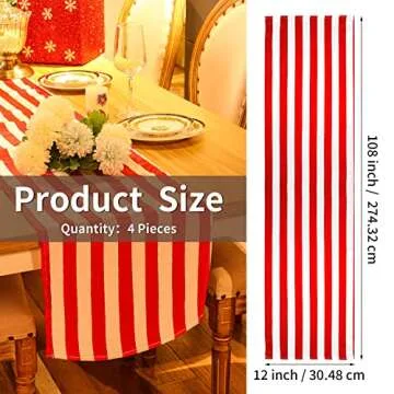 Show moreAdd a splash of color and elegance to your dining experience with our meticulously crafted 4 Pieces Red and White Striped Table Runner. Made from high-quality polyester fabric, these table runners are designed not only to look fantastic but also to be durable and wear-resistant. Measuring 12 inches by 108 inches, they're perfect for a variety of occasions, from festive family gatherings to chic outdoor celebrations. Their vibrant red and white striped design is not just visually appealing but also sets a refreshing and cheerful tone for any event.