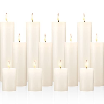 Set of 12 Dripless Ivory Pillar Candles - Versatile Candle Set for Home Decor
