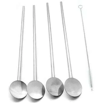 Eco-Friendly Stainless Steel Spoon Straws Set with Cleaning Brush