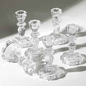 Show more Introducing the exquisite SHOHAYTO Crystal Glass Candlestick Holders – a remarkable collection meticulously crafted to elevate the aesthetics of any home setting. This stunning set includes six candlestick holders, each artfully fashioned from high-quality, durable crystal glass, ensuring they will grace your table for years to come without losing their charm. Effortlessly blending elegance and practicality, these holders are perfect for dinner parties, special occasions, or even everyday use.