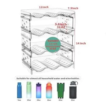 4 Tier Water Bottle Organizer,Clear Stackable Water Bottle Rack for Cabinet,Tumbler Storage Organizer for Kitchen,Fridge,Cabinet Organization and Acrylic Wine Rack and Tumbler Holder Stand torage
